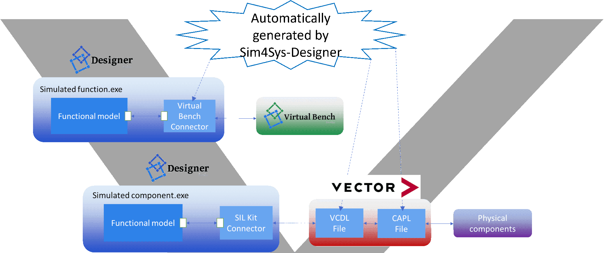 Vector's software “CANoe” is a tool for testing and analyzing ECUs. Vector has developed a new Open Source software library called SILKit. It enables the distributed simulation for automotive applications. CIL4Sys Engineering leverages SILKit to integrate Sim4Sys scenarios with HIL benches, enabling the reuse of existing models for component testing.